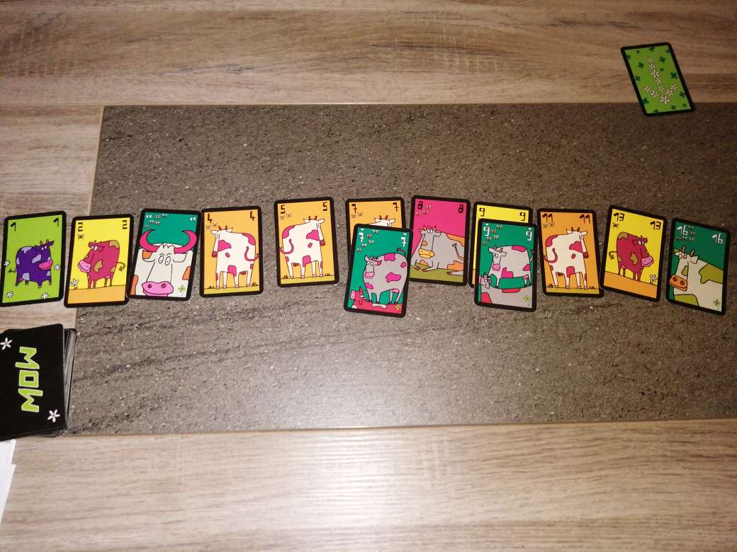 A chaque tour de MOW, vous allez devoir effectuer 2 actions: jouer une carte vache de votre main et en piocher une nouvelle. Jusque-là, rien de bien compliqué. Seulement voilà, la vache posée doit porter un numéro soit plus petit, soit plus grand que toutes les vaches déjà présentes dans le troupeau. Si vous ne pouvez ou ne voulez pas jouer, vous ramassez toutes les vaches… et les mouches qui vont avec.